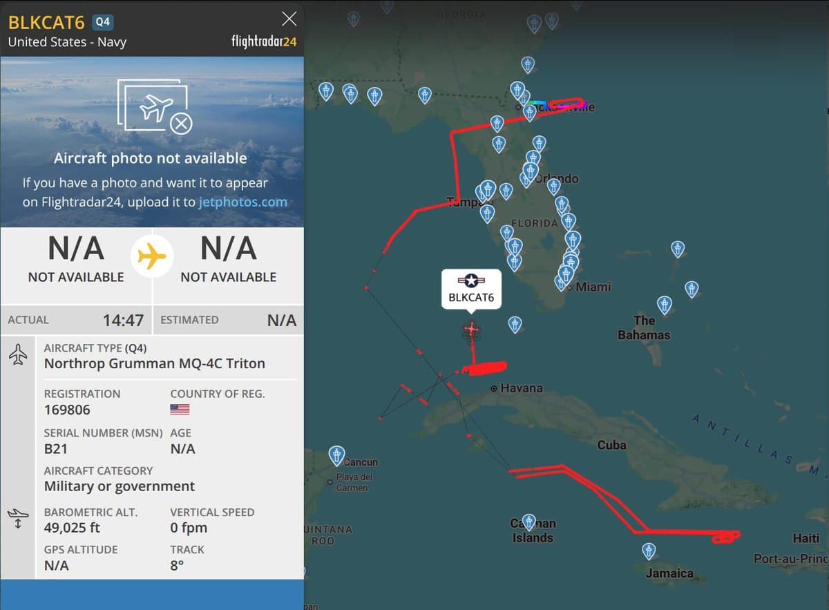 Amid this rhetoric, a U.S. Navy MQ-4C Triton surveillance drone was observed patrolling near Cuba, suggesting increased surveillance and intelligence gathering. This flight aligns with reports that the Pentagon is actively planning for a possible military operation on the island.