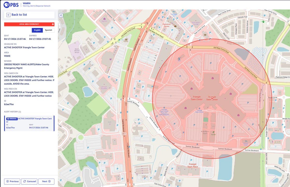 A shooting at the Triangle Town Center mall in Raleigh, North Carolina, left a man and a woman injured. Police confirmed the incident and stated no suspect is in custody, with the investigation ongoing. In Illinois, initial reports of multiple fatalities from a tornado in Lena were incorrect; local media now reports there have been no deaths from the severe weather event.