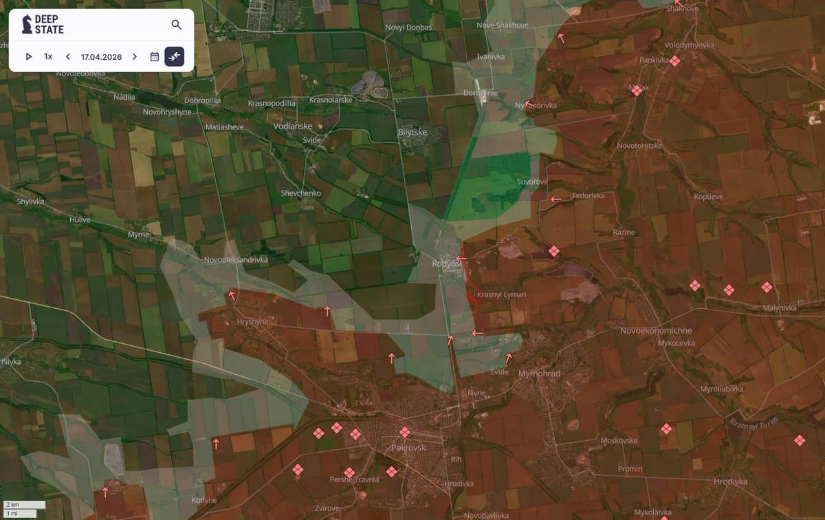 The Russian Army reported the capture of the village of Veterinarnoye in the Kharkiv region, a minor territorial gain. Russian military sources also reported the 'West' group of forces was conducting offensive operations in the Boguslav direction, with assault units advancing near the settlement of Borovaya. Russian sources released footage they claimed showed a FAB-3000 strike on Ukrainian Armed Forces positions in Konstantinovka, reportedly targeting Ukraine's 100th Separate Mechanized Brigade.