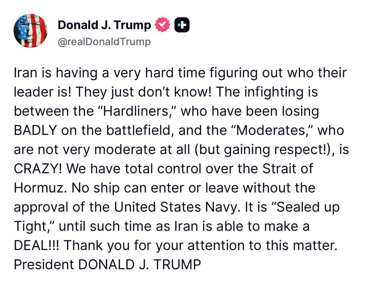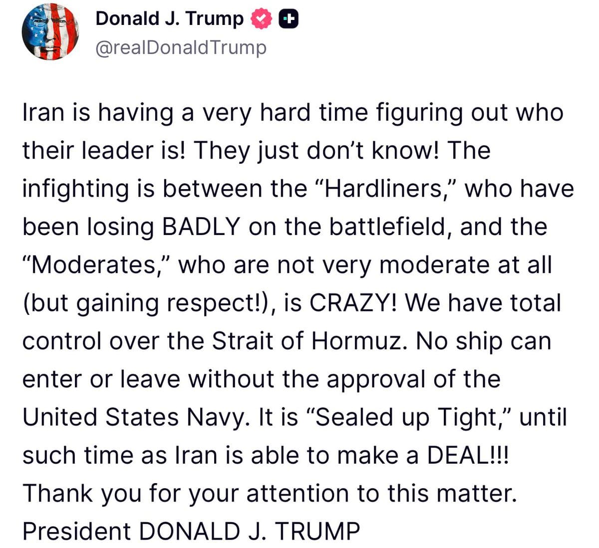 Rhetorical and strategic posturing between the US, Israel, and Iran intensified. President Trump mocked Iran's leadership confusion, stating no one in the country knows who is in power. He later threatened to 'knock out' Iran's oil resupply, claiming the country's oil infrastructure is at risk. Trump also claimed US forces had hit 75 percent of their intended targets in Iran and that the naval blockade is 100 percent effective. A US official stated deployed forces have used the ceasefire period to reposition and restock and are prepared to resume strikes if ordered.
