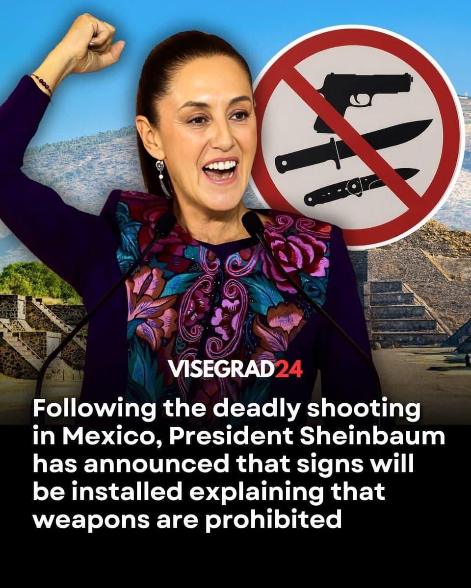 Mexico's President Claudia Sheinbaum announced new signs banning weapons at archaeological sites following a shooting attack at the Pyramid of the Moon.