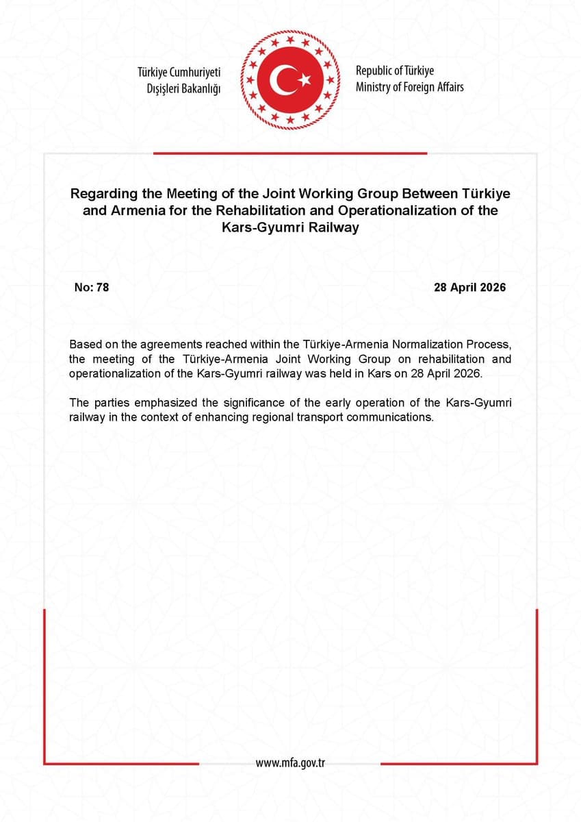Turkey and Armenia held talks in Kars to advance reopening the Kars–Gyumri railway for regional connectivity.