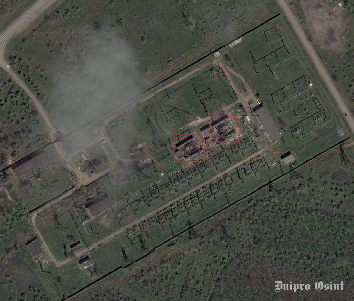Satellite imagery confirms FP-2 drones destroyed both transformers at a 220 kV substation in Alchevsk.