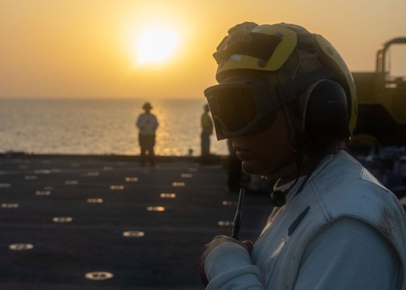 U.S. Central Command has released new photos of sailors and Marines aboard the USS Rushmore enforcing the naval blockade in the Arabian Sea.