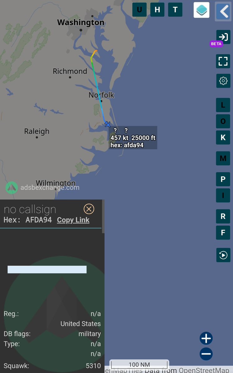 A US Navy E-6B Mercury aircraft has been tracked using tactical hex code #AFDA94 out of Patuxent River Naval Air Station.