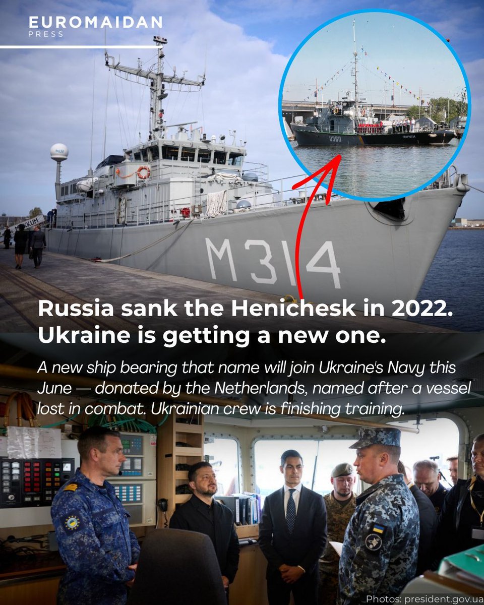 Ukraine will receive a new Alkmaar-class minehunter from the Netherlands in June, which will bear the name of a vessel sunk by Russia in 2022.