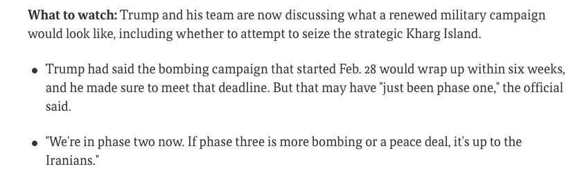 President Trump and his team are discussing a renewed military campaign against Iran, including the potential seizure of strategic Kharg Island.