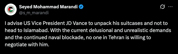 An advisor to Iran's negotiating team has publicly told US Vice President JD Vance not to travel to Islamabad for planned peace talks.