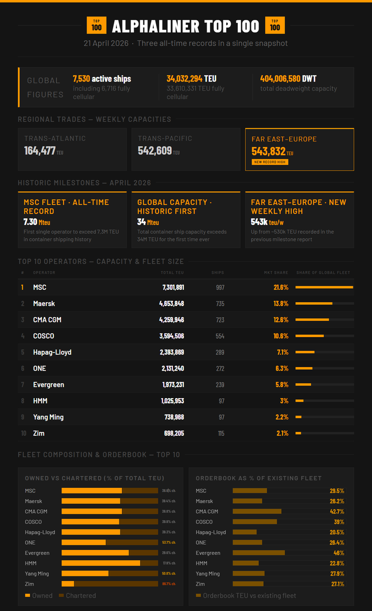 ๐ Container shipping hits new capacity milestones across multiple fronts! ๐ข @MSCCargo fleet has now exceeded 7.3 Mteu.