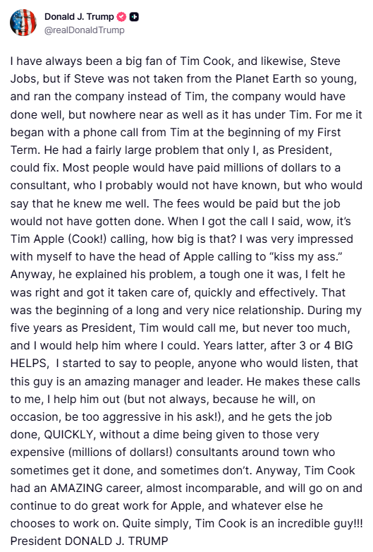 Trump: I have always been a big fan of Tim Cook, and likewise, Steve Jobs, but ...