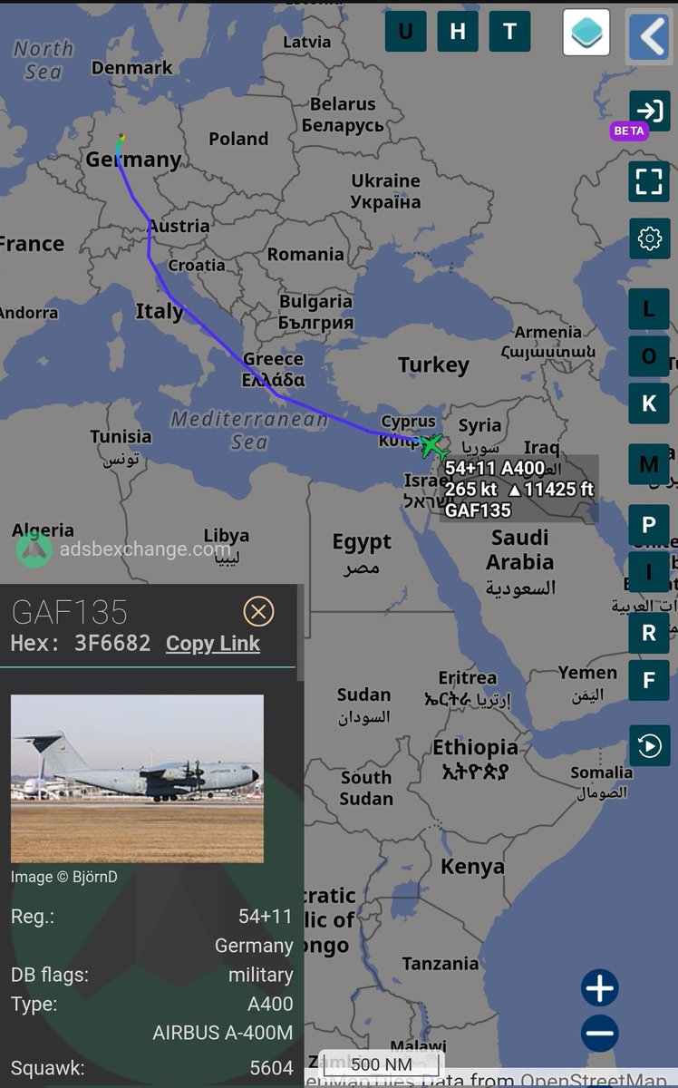 Germany 🇩🇪 A400M Atlas #3F6682/54+11/GAF135 Tracking NW out of Beirut. Aircraft arrived at Beirut earlier today out .