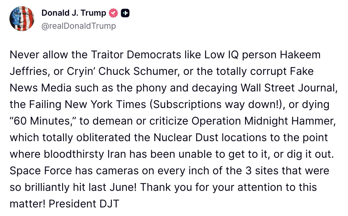 Trump: Space Force has cameras on every inch of the 3 sites that were so brilliantly hit last June! https://t.co/egno4p.