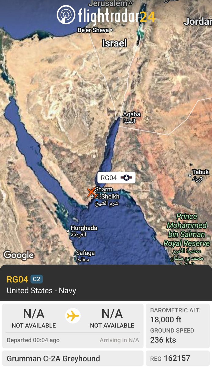 C-2A Greyhound 🇺🇲 #AE0451/162157/RG04 Tracking NW out of the Red Sea. USS Gerald R. Ford (CVN-78) COD @Borrowed7Time h.