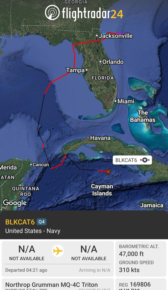 MQ-4C Triton πΊπ² #AE7817/169806/BLKCAT6 Out of Jacksonville operating over the Caribbean Sea, south of Cuba π¨πΊ @Bor.