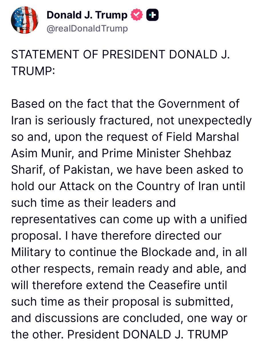 President Trump says the US is holding its planned attack on Iran at the request of Pakistani leaders.