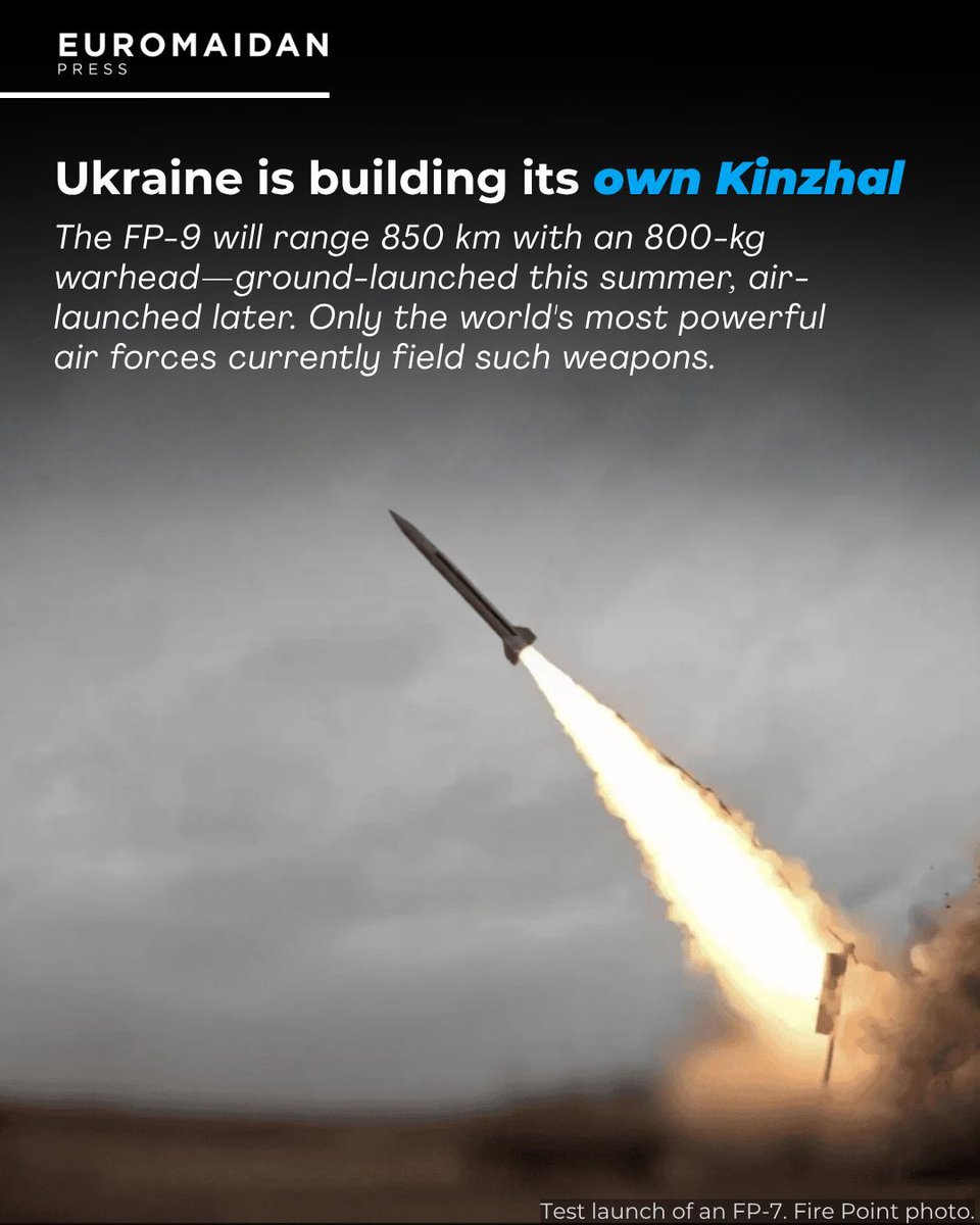 Ukraine's Fire Point company is developing the FP-9 missile, an 850-km-range weapon designed as a domestic answer to Russia's hypersonic Kinzhal.