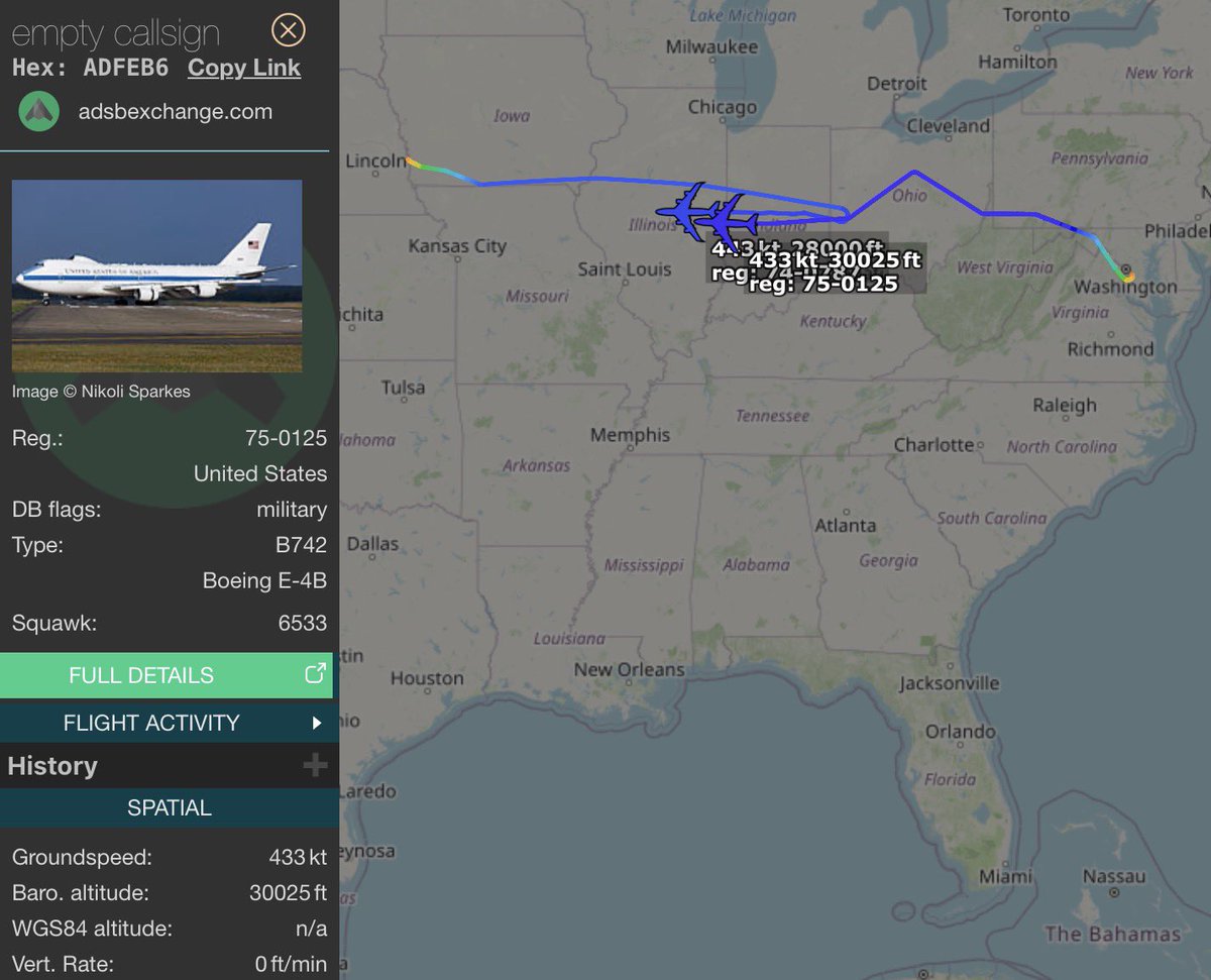 Two U.S. Air Force E-4B NAOC 'Doomsday' aircraft were observed conducting a rendezvous over Ohio in what appears to be a continuity of government training flight.