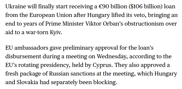 The EU has provisionally approved a €90 billion military loan for Ukraine, expected to cover two-thirds of its defense spending for the next two years.