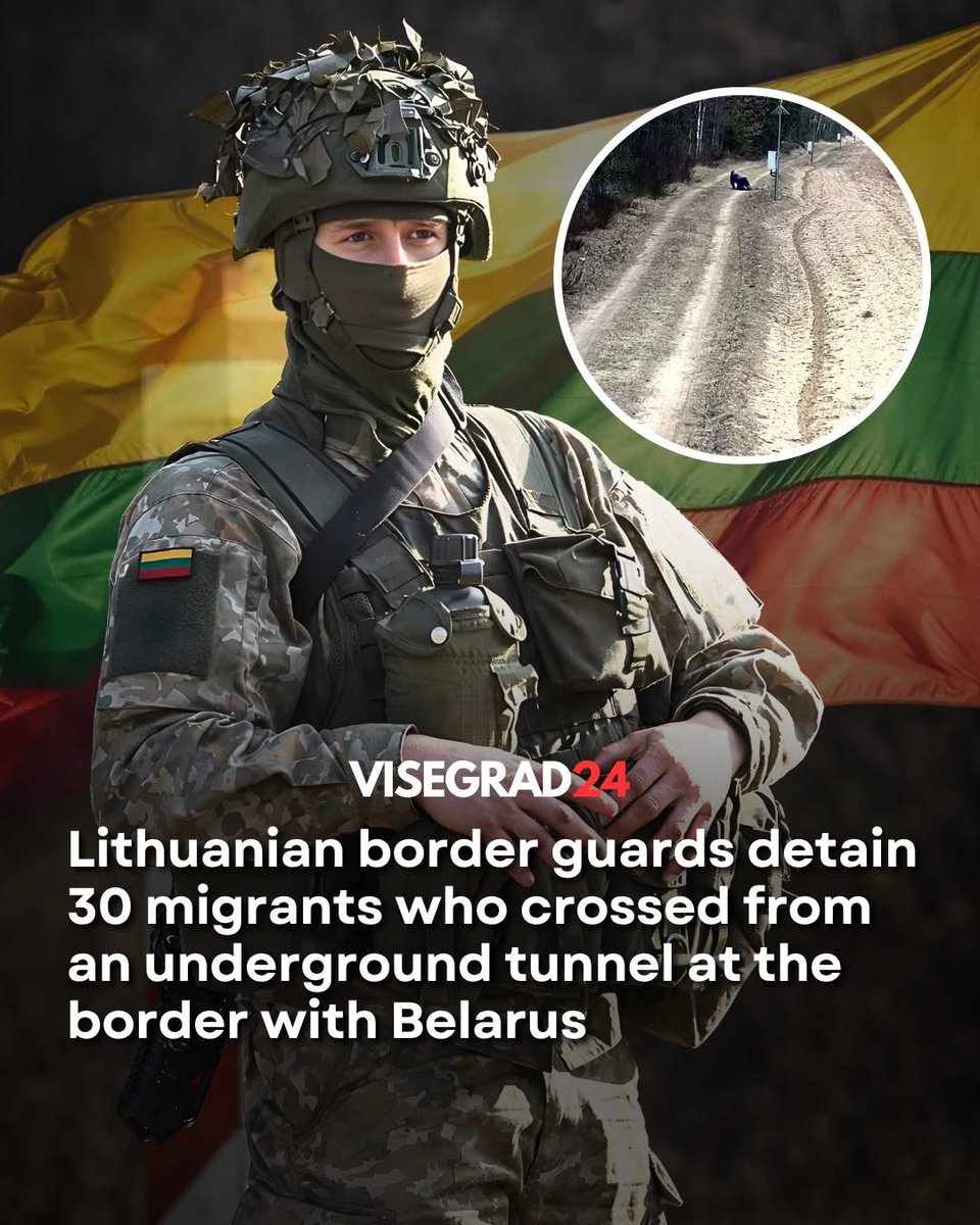 Lithuanian border guards have detained 30 migrants who crossed from Belarus through an underground tunnel.