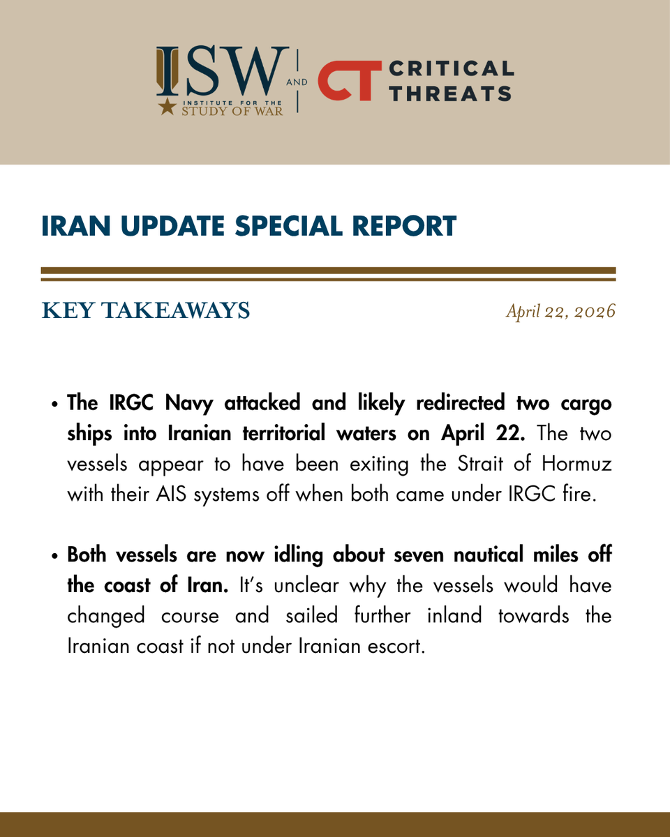 Iran's IRGC Navy attacked two cargo ships exiting the Strait of Hormuz and likely redirected them into Iranian waters.