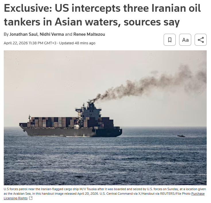 US intercepts Iranian oil tankers in Asian waters