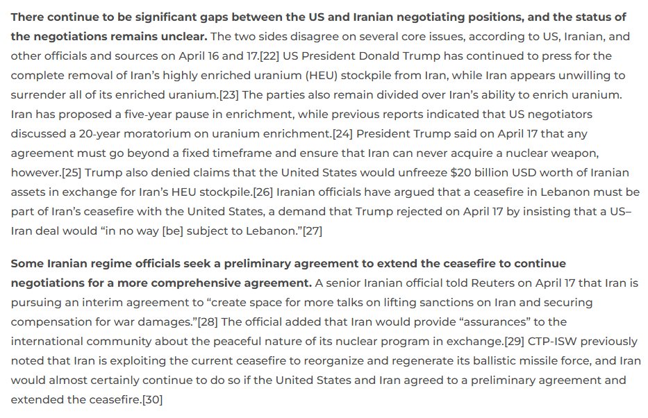 Significant gaps remain between US and Iranian negotiating positions on core issues as of April 16-17.