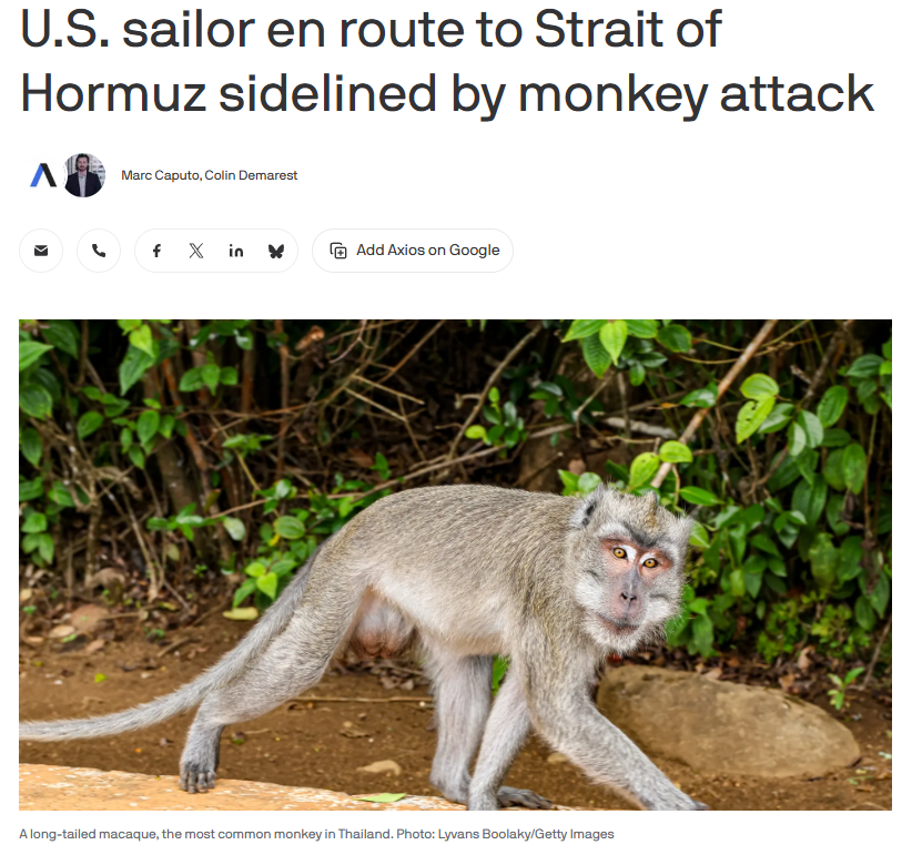 A U.S. Navy sailor was medically evacuated from Thailand to Japan after being scratched by an Asian monkey during a port stop.