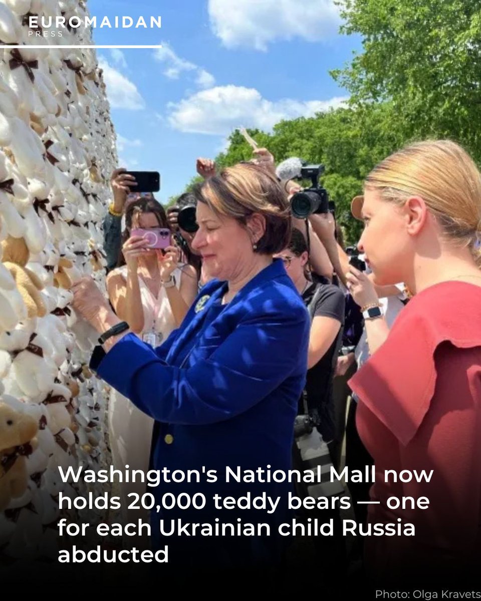 A massive display of 20,000 teddy bears on the National Mall spells out a message accusing Putin of abducting Ukrainian children.
