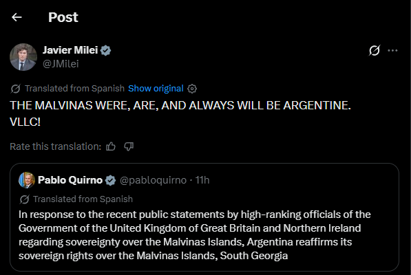 Milei: Malvinas are Argentine