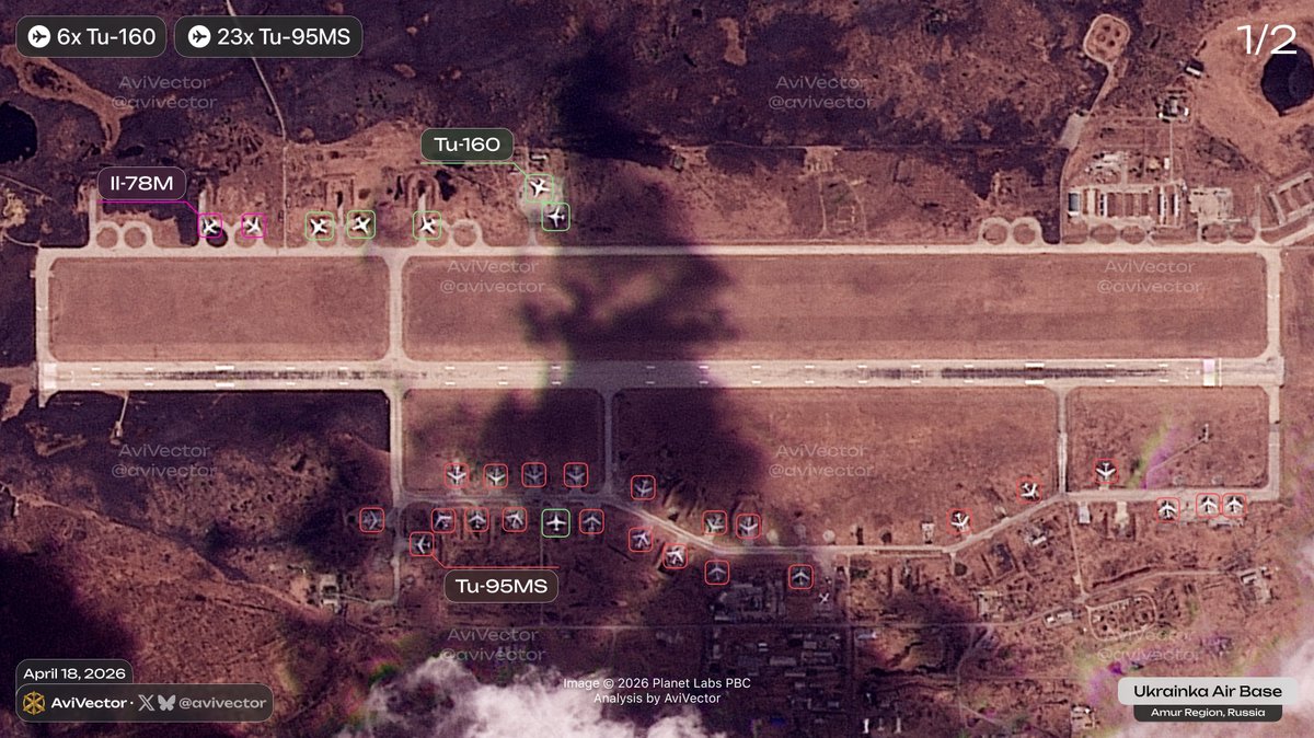 Satellite imagery reveals the disposition of Russian strategic bombers at Ukrainka Air Base, including recent redeployments.