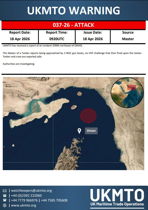 The UK Maritime Trade Operations (UKMTO) center has officially confirmed the incident, issuing an advisory based on the tanker master's report.