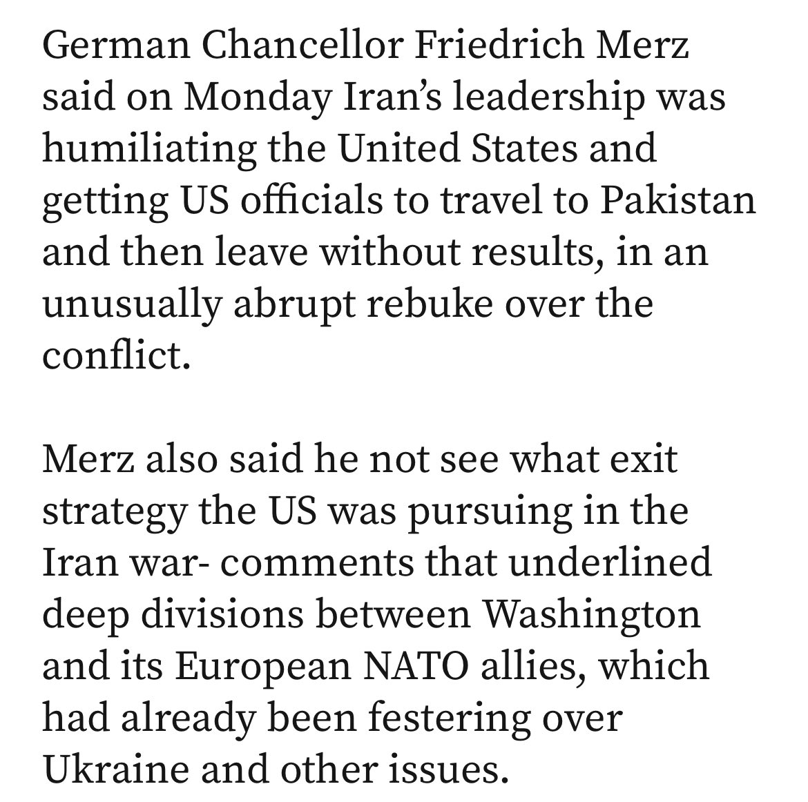 Merz: Iran humiliates US, questions war strategy