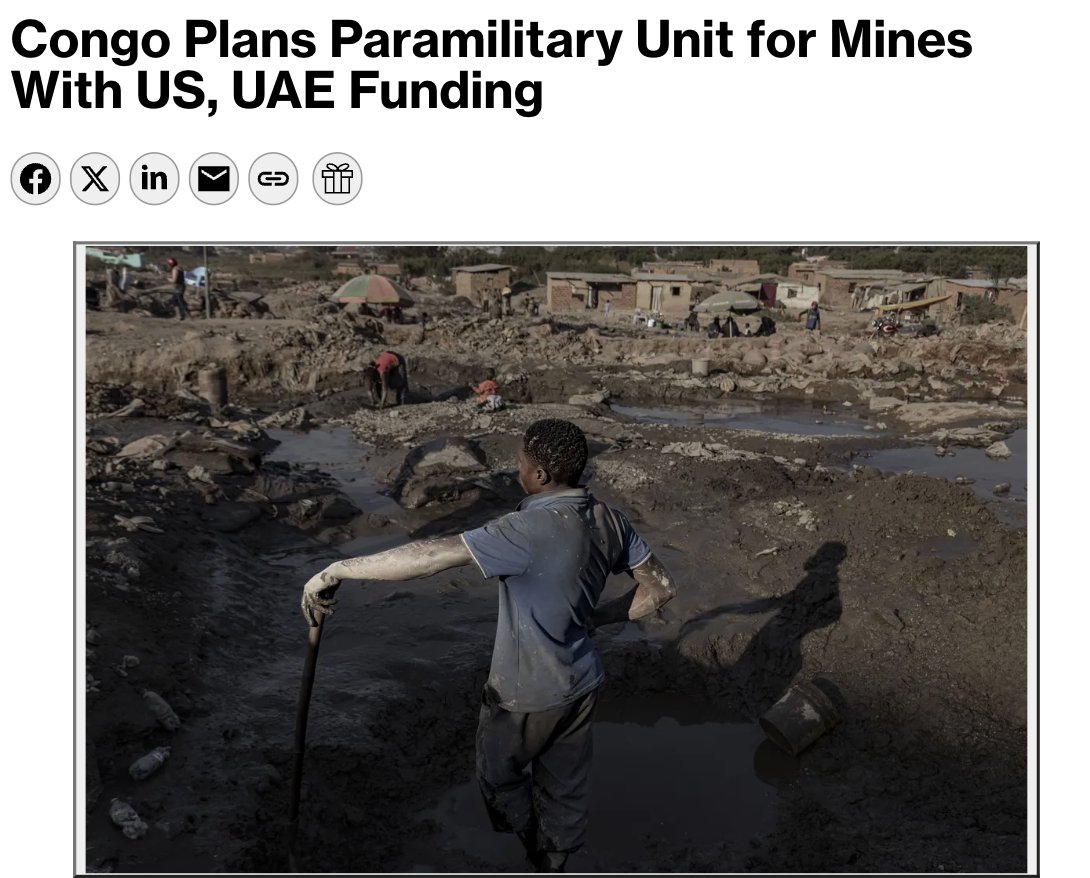 The DRC has launched a US and UAE-backed paramilitary 'Mining Guard' with plans to grow from 3,000 troops to over 20,000 by 2028.