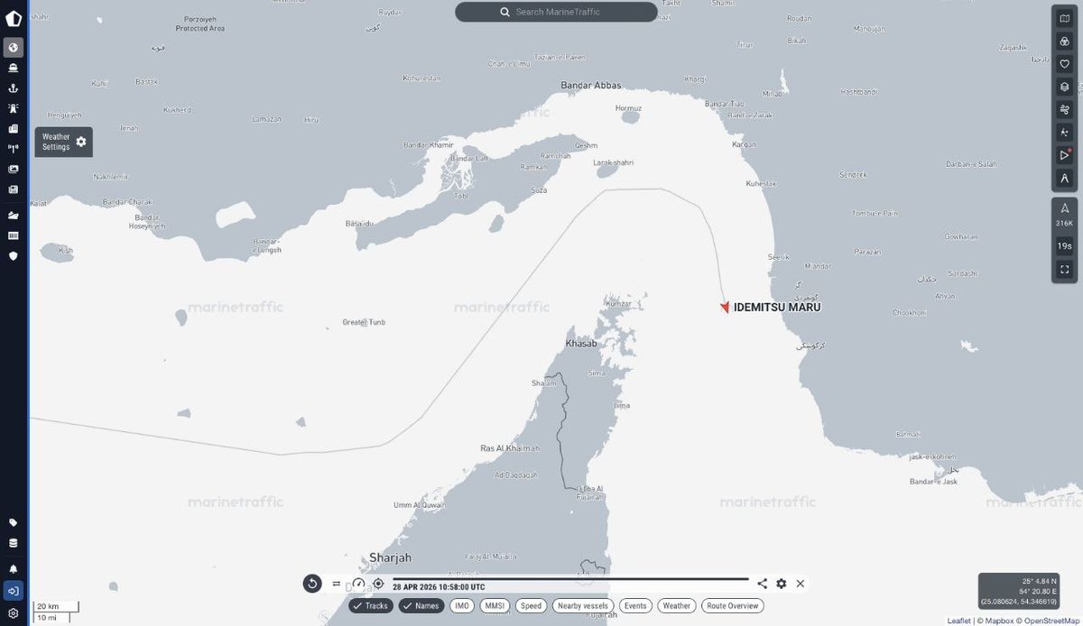 Japanese VLCC Idemitsu Maru transits Strait of Hormuz after receiving Iranian permission, carrying 2M barrels of crude.